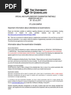| Final Examination Timetable Semester Deferred Supplementary St Lucia Campus Wednesday 20 July To Friday 22 July Pdf Free Download |